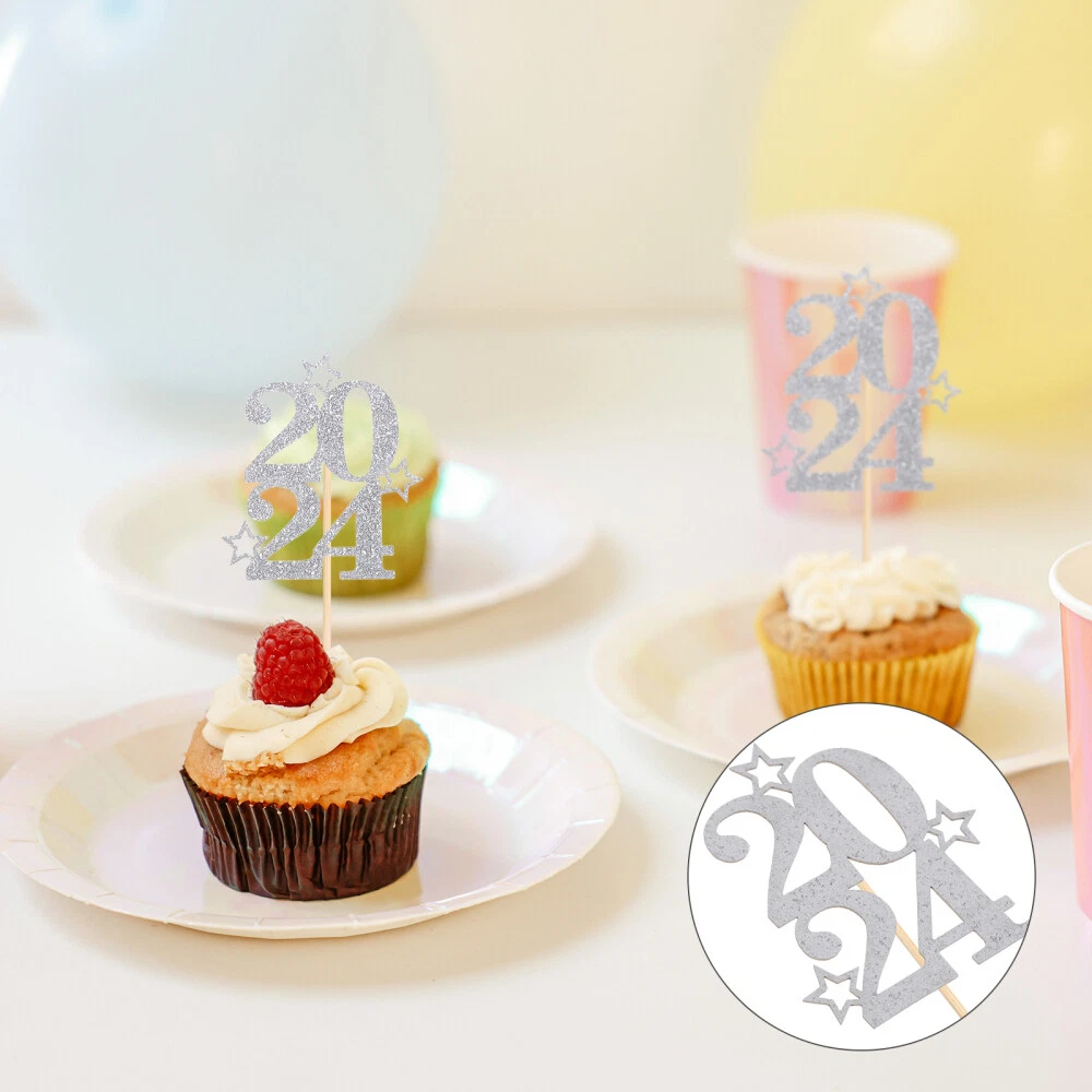 30 Pcs Digital Cake Insert 2024 New Year Cake Topper Christmas