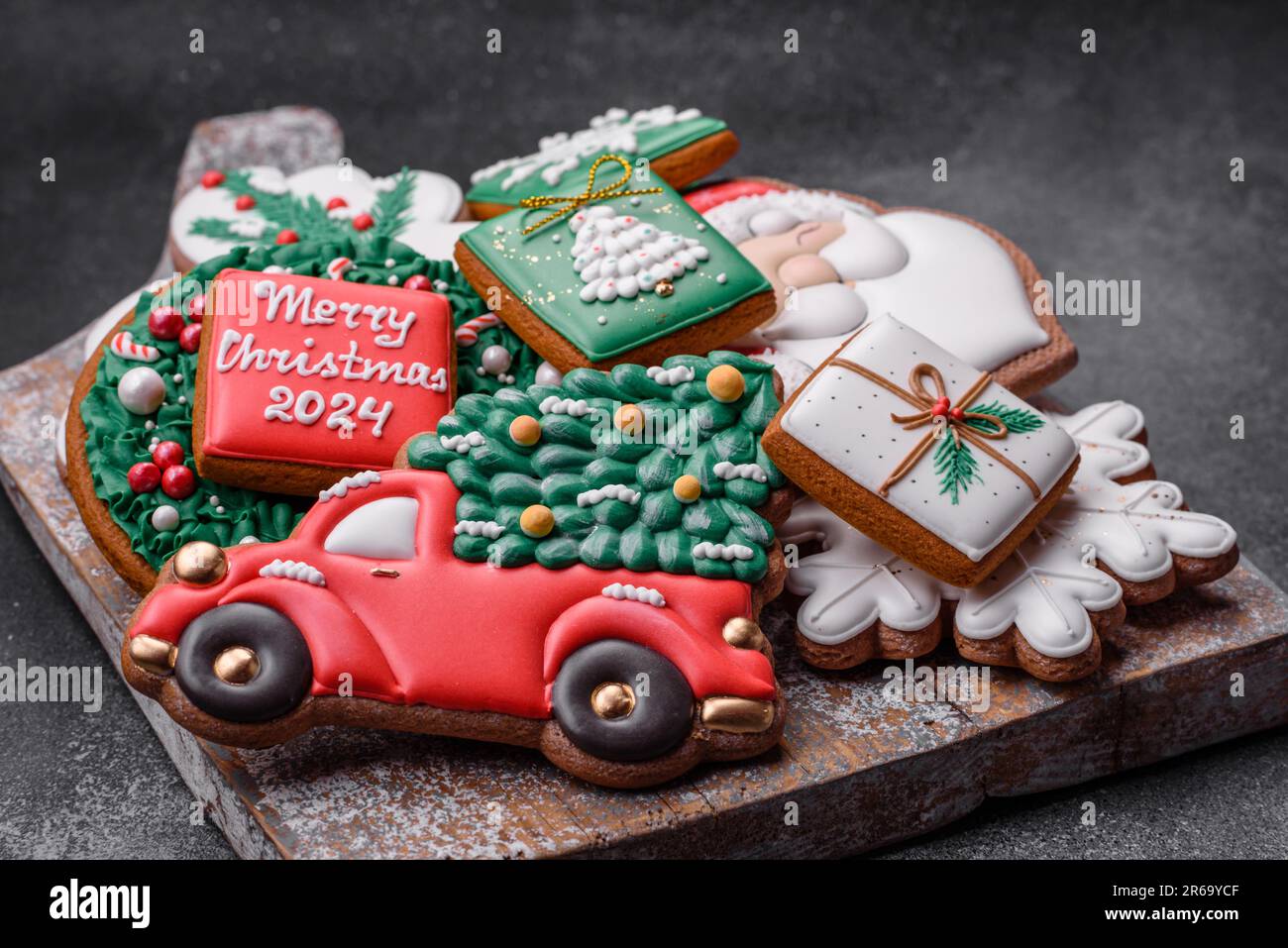 Beautiful colored Christmas gingerbread cookies for the design and